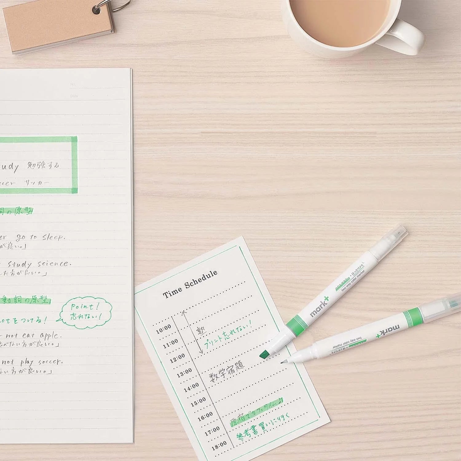 From Kokuyo, one of Japan’s most trusted stationery brands, comes a smart, space-saving solution for anyone who loves neat, expressive note-taking. The Mark+ 2-Way Highlighters feature a chisel tip for subtle highlighting and a fine liner for detailed writing — both in matching hues for perfectly organized pages. Whether you’re a bullet journal devotee, student, or traveler with a planner, this set keeps your thoughts bright and beautifully balanced.