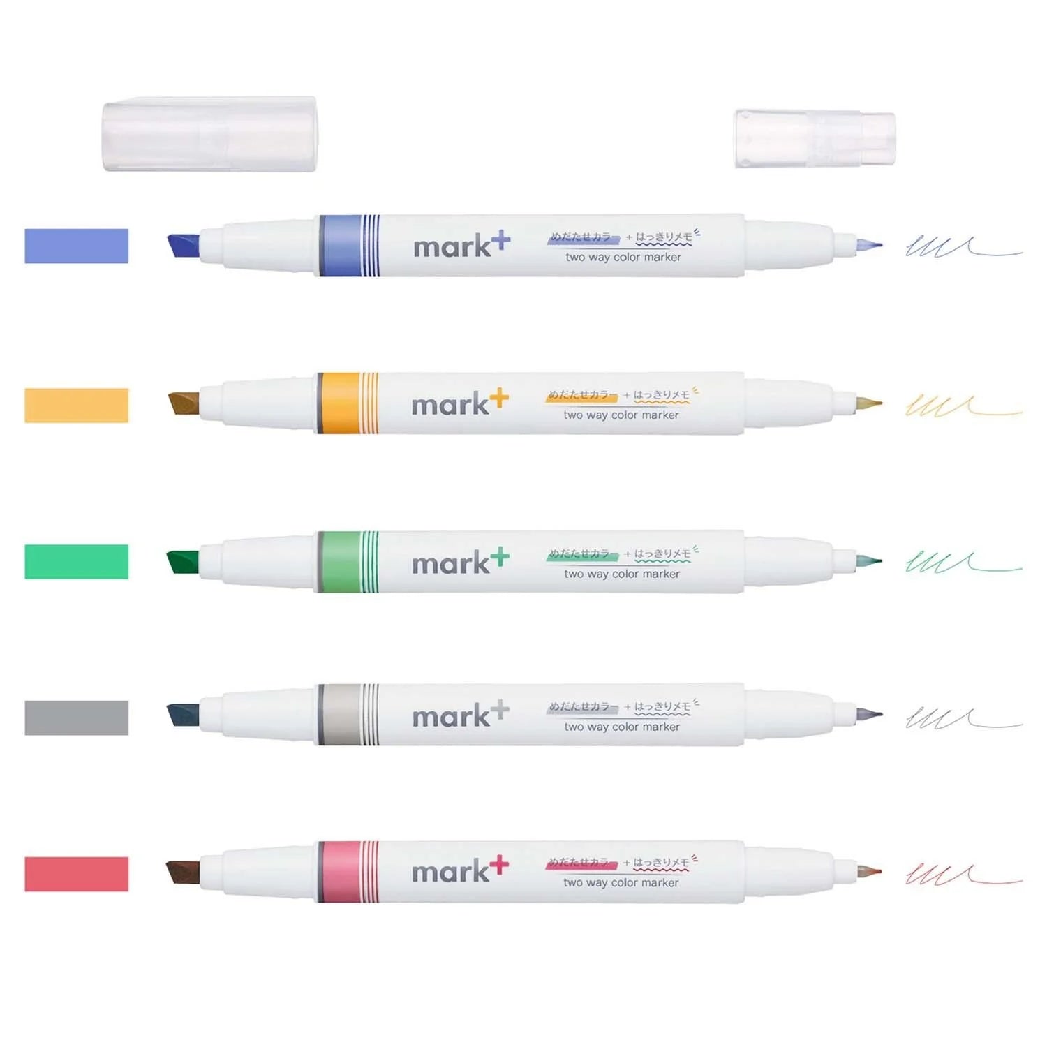 Highlight, organize, and color-code your notes with ease using the Kokuyo Mark+ 2-Way Vivid Highlighter Set. This beautifully designed 5-pack from Japan combines soft, non-glary tones with a dual-tip design, making it ideal for journaling, studying, or everyday planning. Featuring Gold, Gray, Light Green, Navy, and Red inks, each pen helps you stay creative and coordinated in style.