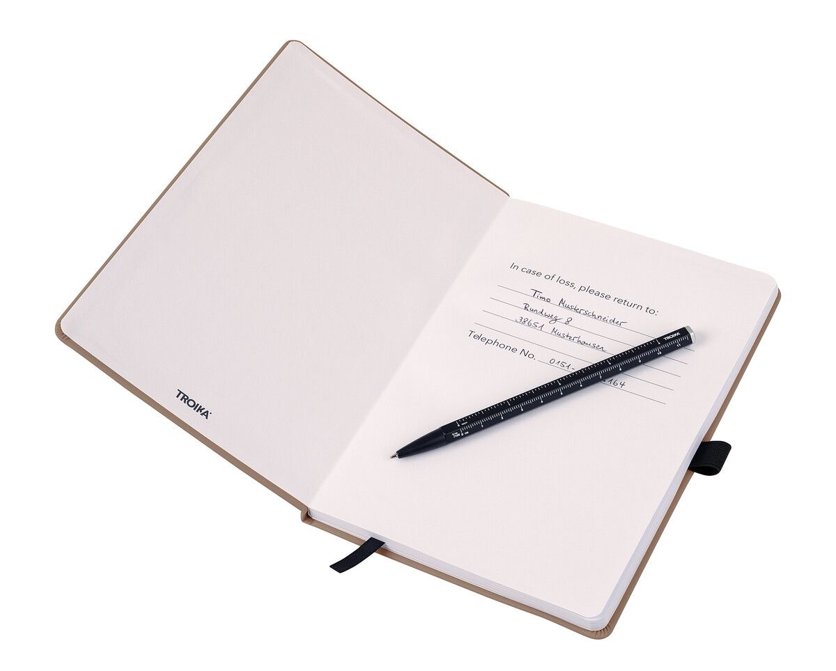 Troika A5 notebook set is a stylish and functional choice for your bullet journal or everyday note taking. A six sided twist cap ballpoint pen with a ruler imprint is included and fits perfectly in the journal pen loop.