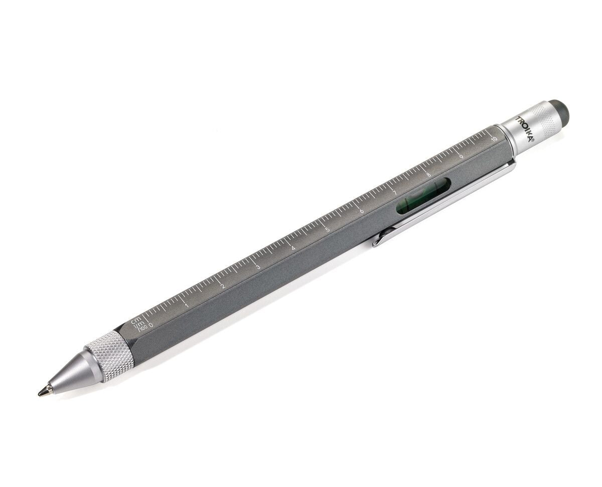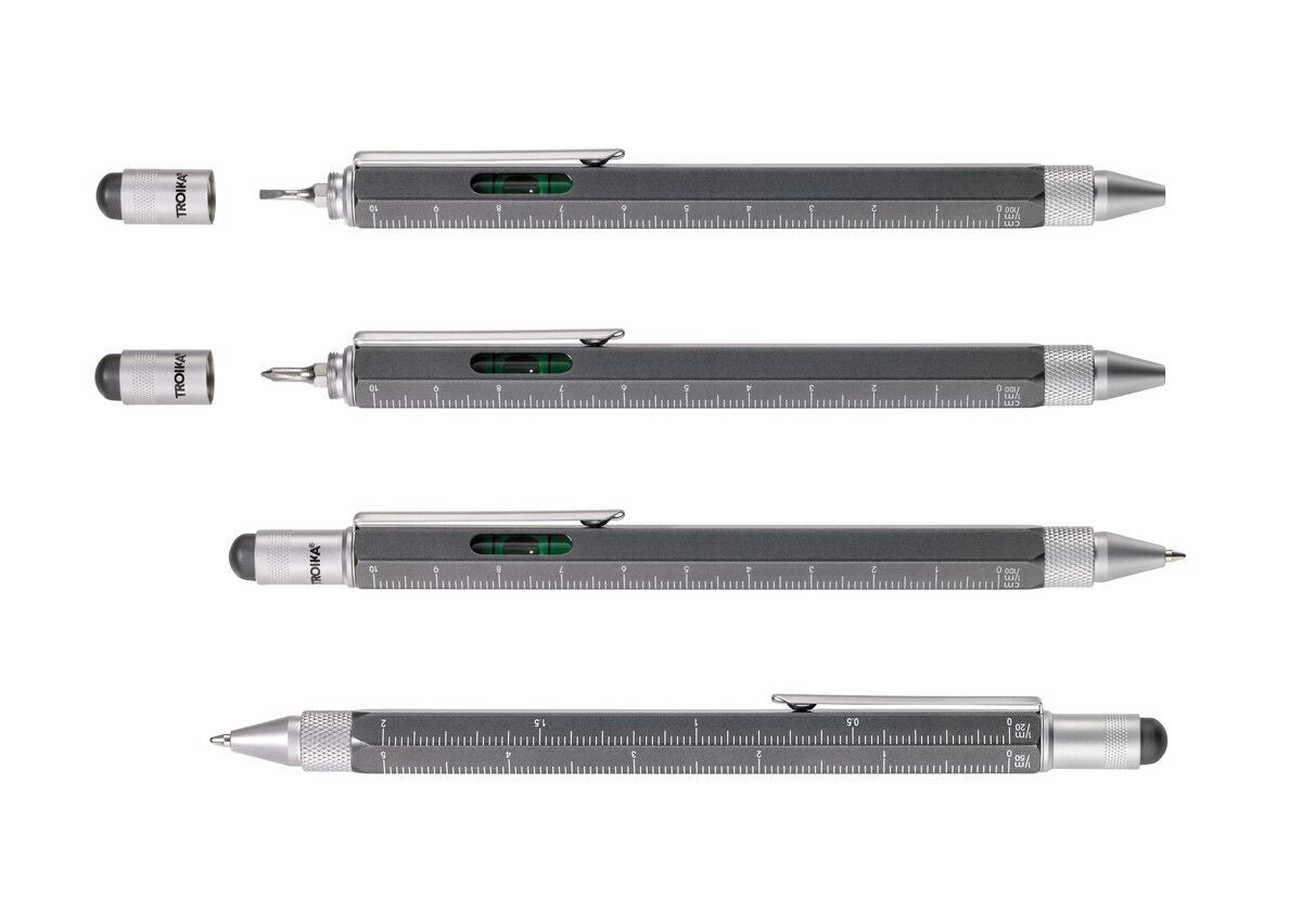 Troika's much imitated original Construction Pen in brass with a titanium grey finish. Its stylus is made of highly sensitive and tear resistant rubber. This ensures a particularly soft and reliable contact with the display of a touchscreen device. Makes the perfect gift for engineers, DIY enthusiasts and of course writers. Nicely balanced with a six sided barrel for a comfortable grip.